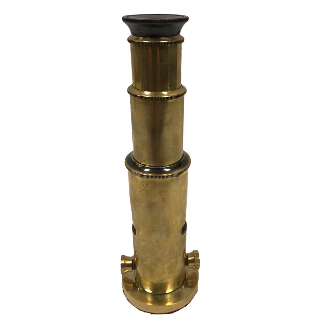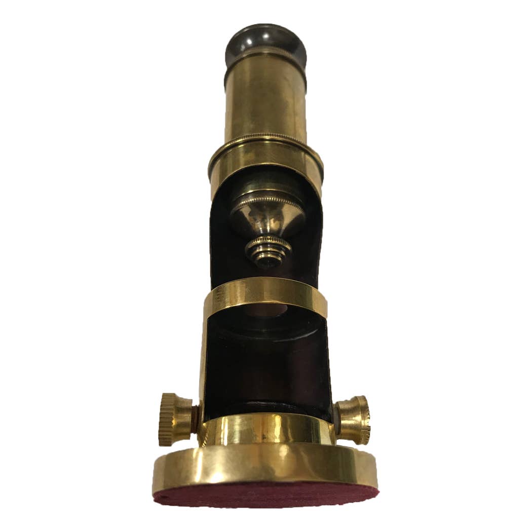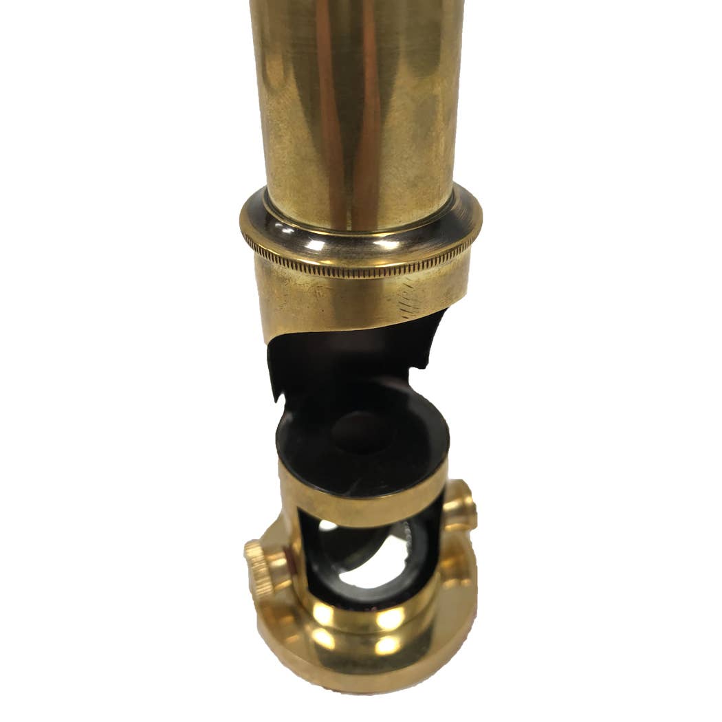 This elegant reproduction of an authentic brass, functioning portable field microscope will be the highlight of any room, classroom, or desktop. Made of solid polished brass with a 4x lens.