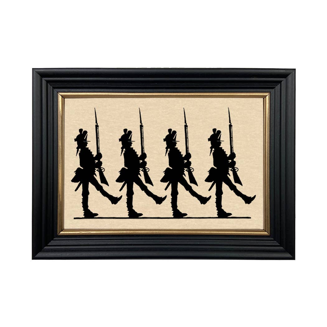 Colonial Soldiers Paper Cut Silhouette in Black Wood Frame