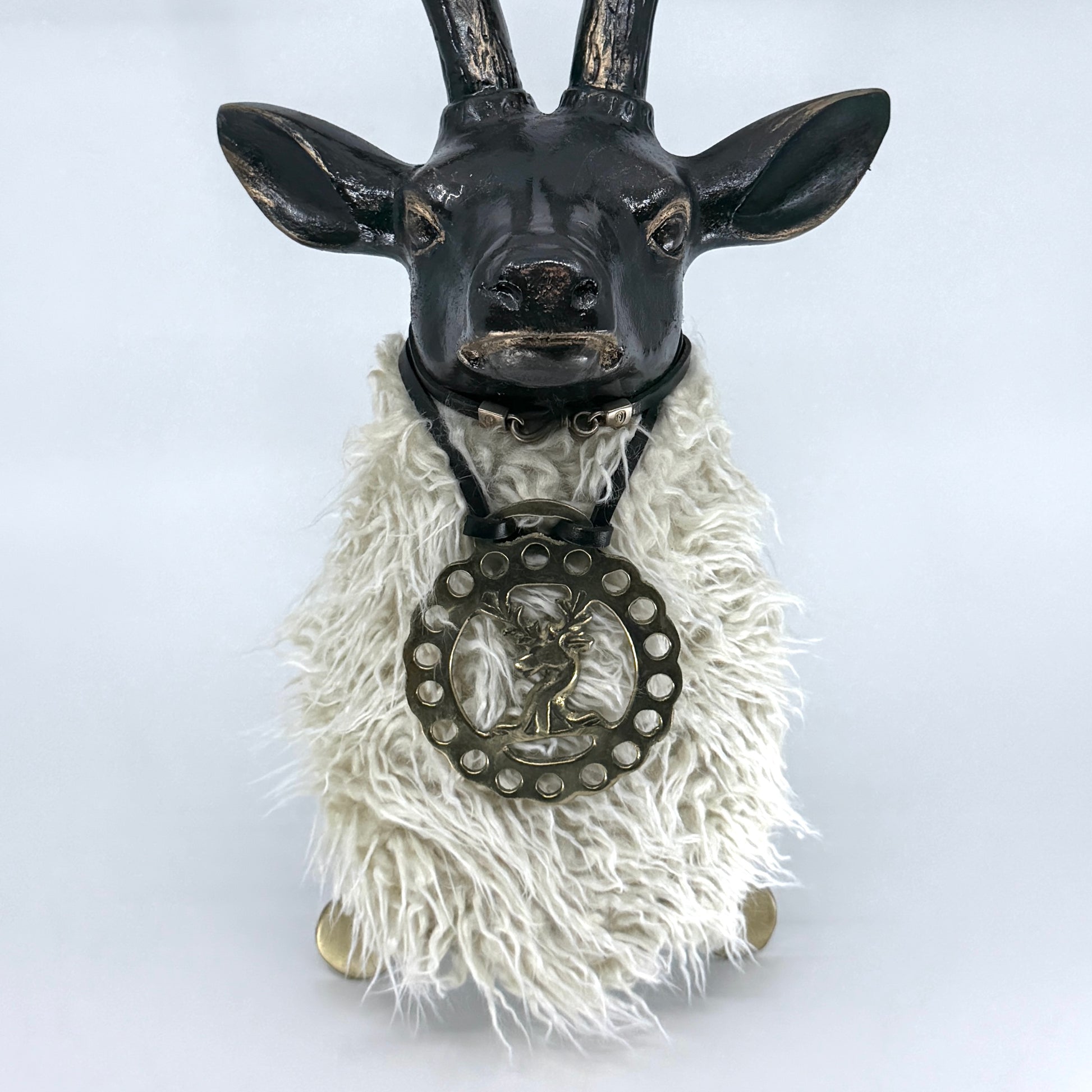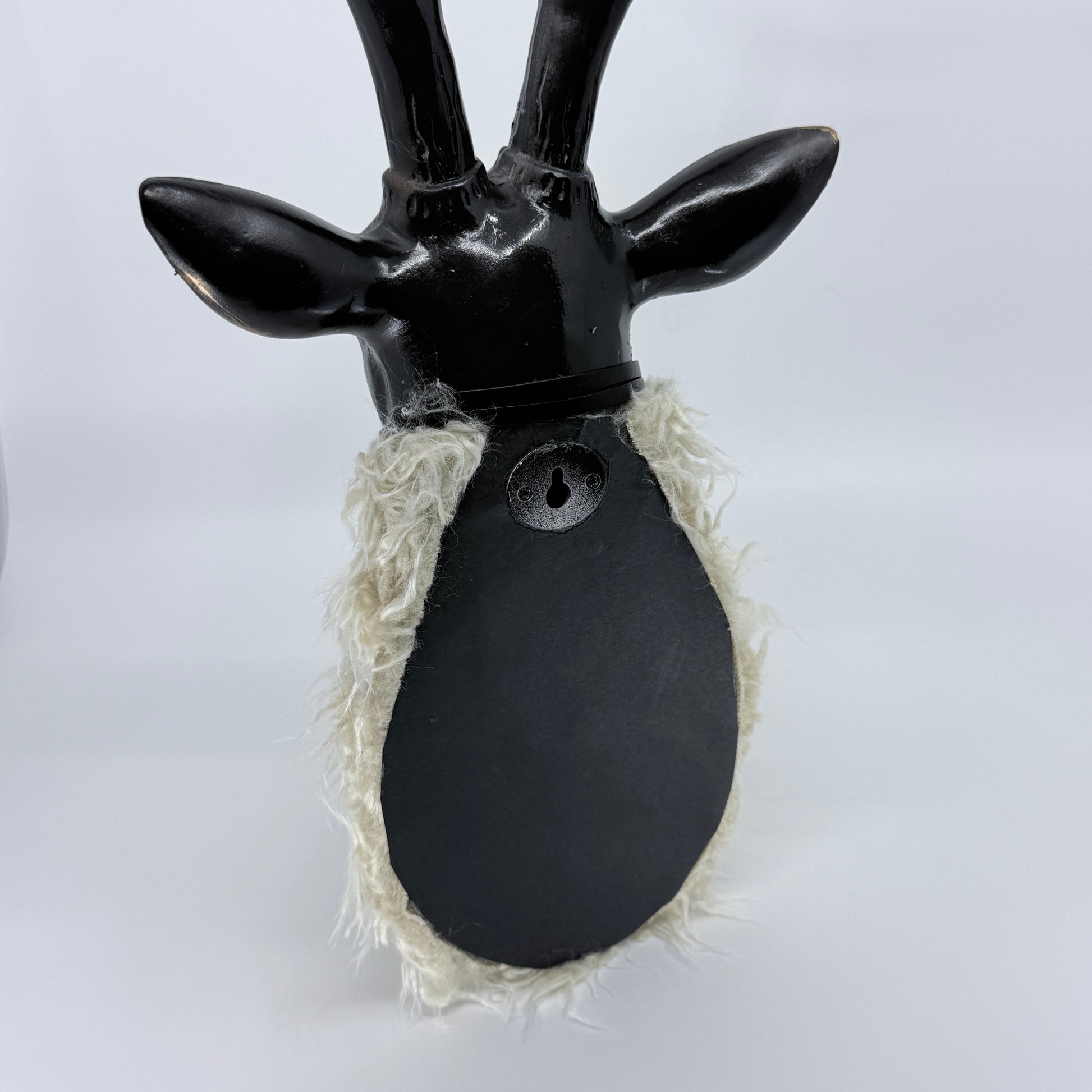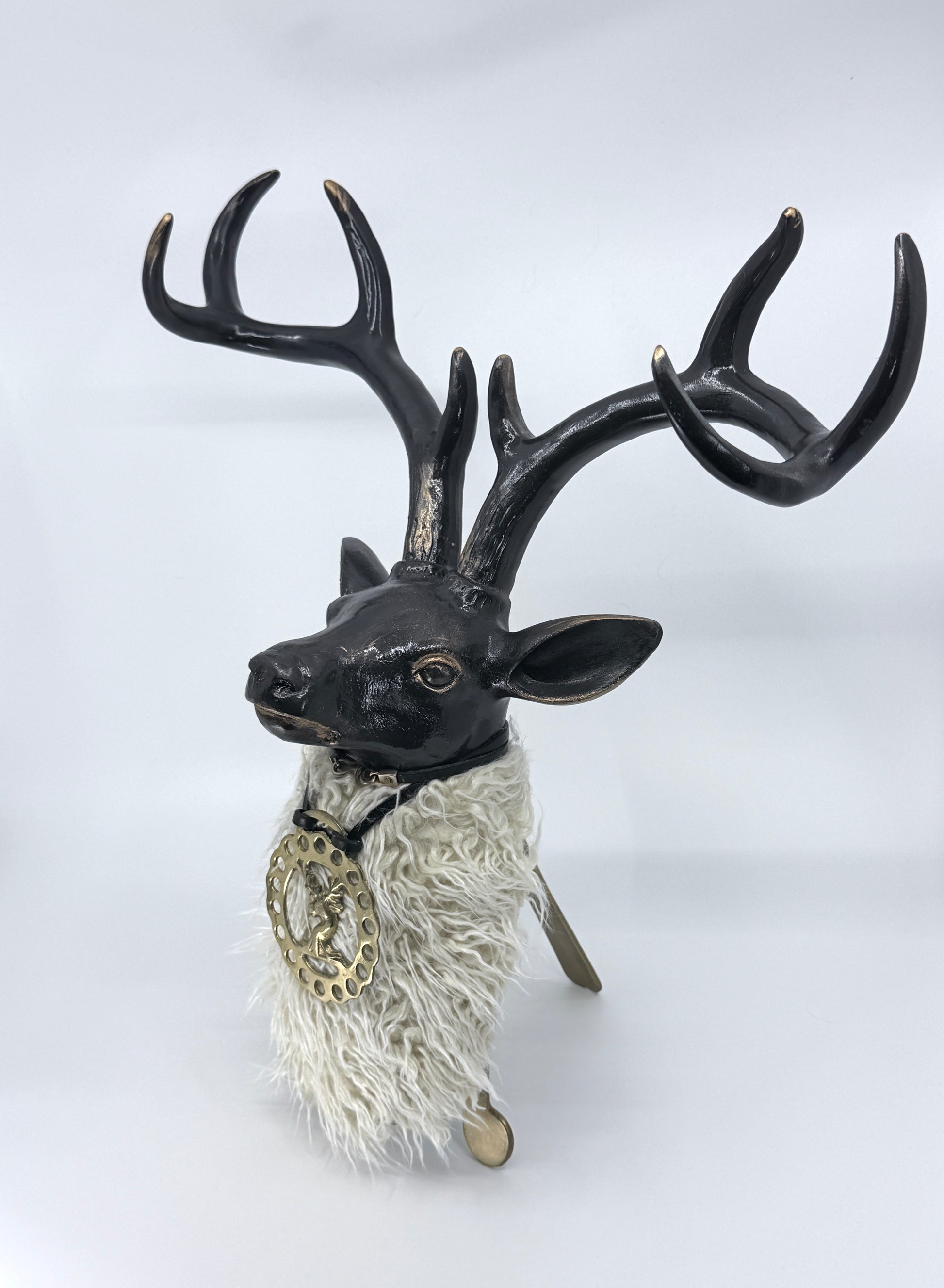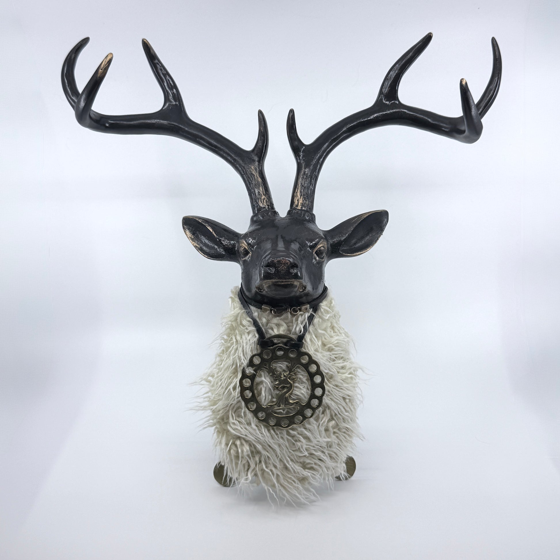 • Luxurious Mongolian Fur: A dense, soft collar of white Mongolian faux fur frames the stag's neck, giving it a textural, high-fashion look.